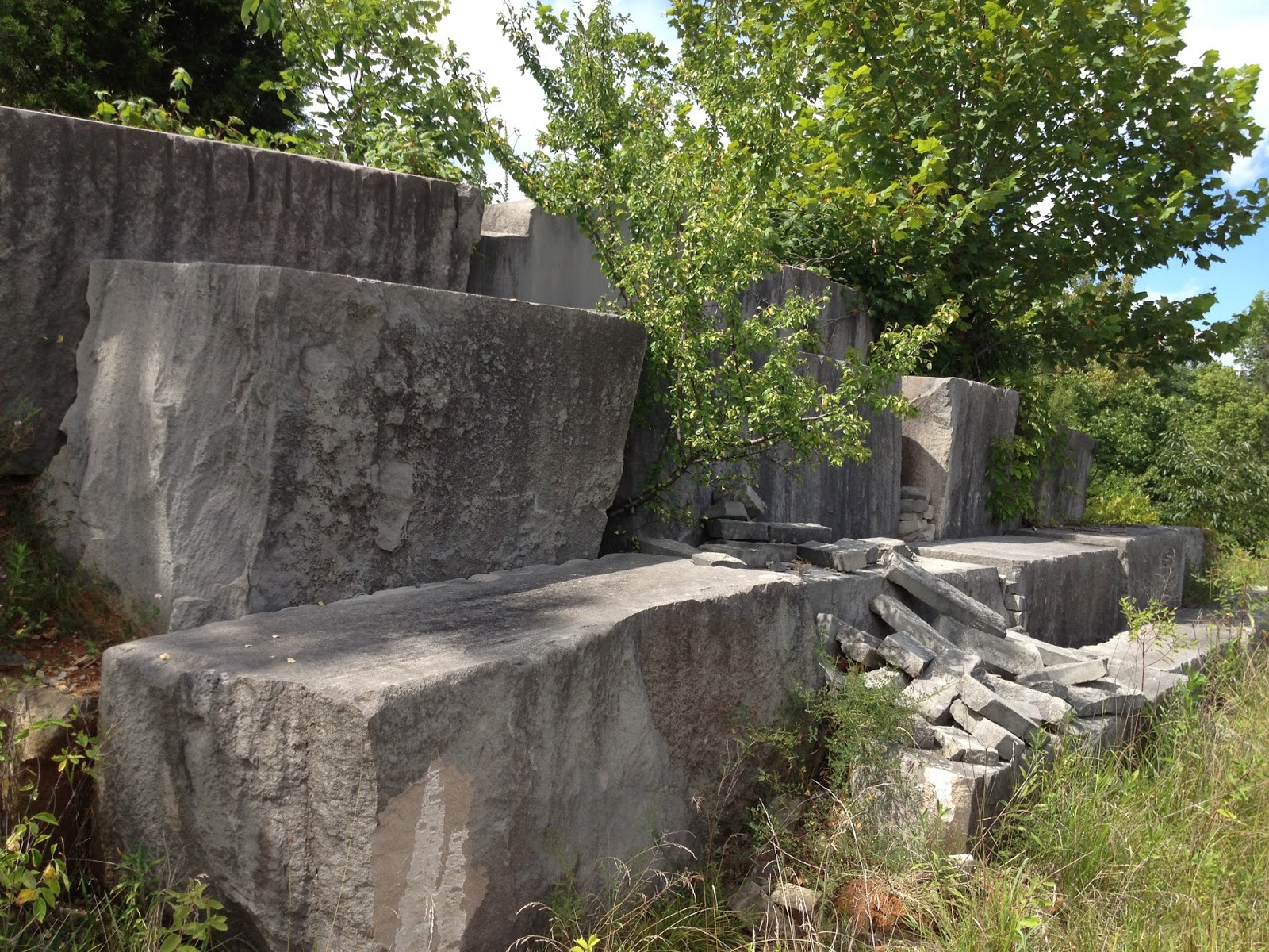 The site is also covered with the obvious remains of its days as an active mine. A small section of rail remains, along with some truck tires and piles of cut but unused stone. If they truly spent $700,000.00 on the project, I have no idea where it went. One thing is for sure though, these ruins will be on site for decades to come, provided that they are hauled away to be used in a building near you.